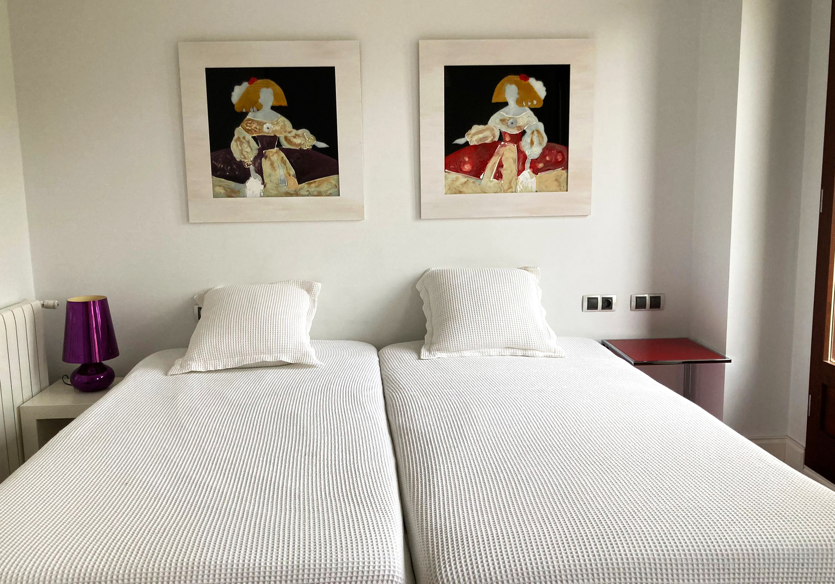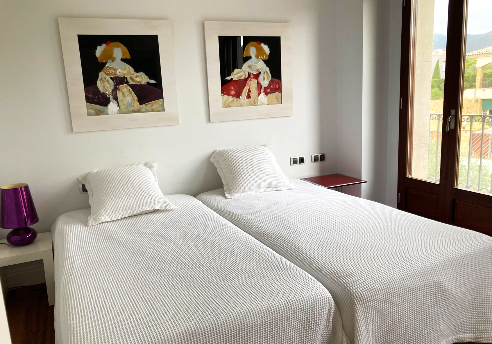 - Bany exclusiu, (situat davant de l’habitació, amb lavabos amplis individuals) amb habitació Violeta, de 2 persones.